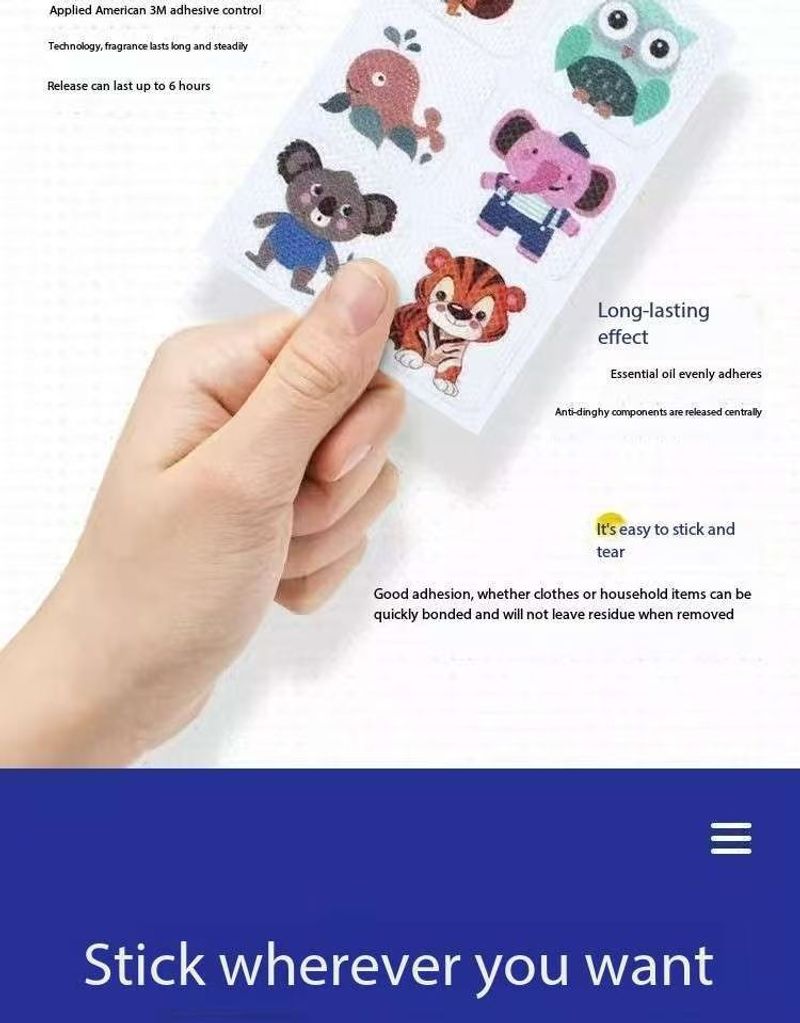 Are mosquitoes a constant headache in Ghana's warm and humid climate? Don't let the buzzing noise disrupt your daily routine! Made in China, Ding Ding Mosquito Repellent Patches are designed to be carried with you, making them a breeze to deal with mosquito problems.- Compact and portable, suitable for use anytime, anywhere: A thin patch can be attached to clothing, bags, strollers, and more. Perfect for sleeping, walking, going to work, school, or even having a picnic. It takes up very little space and is incredibly convenient.- Natural ingredients, safe and reliable: The gentle formula, free of pungent chemical odors, makes it safe for adults and children (over 6 months old). It's gentle on the skin, allowing you and your family to enjoy mosquito-free days.- Long-lasting protection, no more bites: Each patch provides 4-6 hours of repellent, effectively repelling mosquitoes and other blood-sucking insects, reducing the itching and annoyance of bites, making your life in Ghana more comfortable.Don't be bothered by mosquitoes anymore! Ding Ding Mosquito Repellent Stickers help keep mosquitoes out, allowing you to travel freely anytime, anywhere. Get yours now and enjoy a little peace of mind!