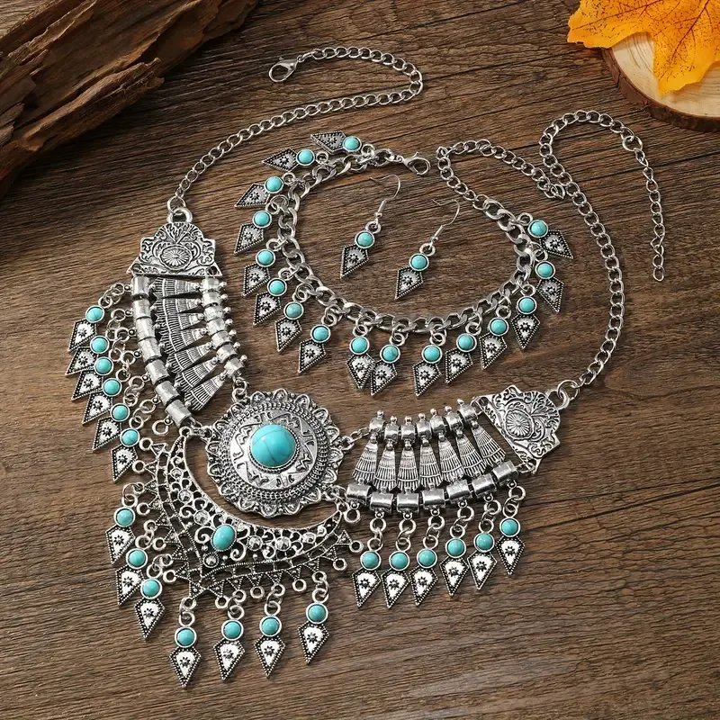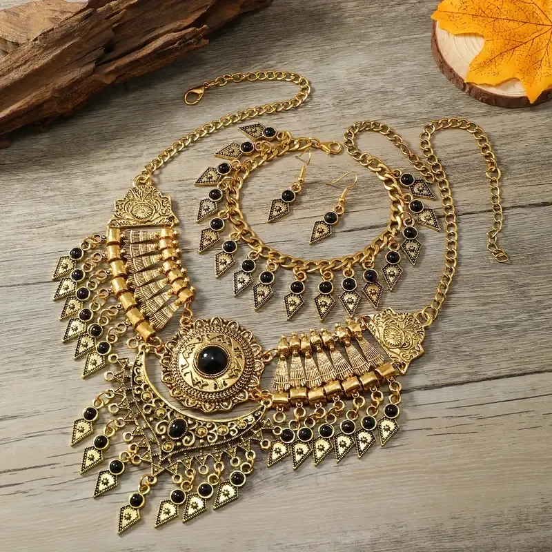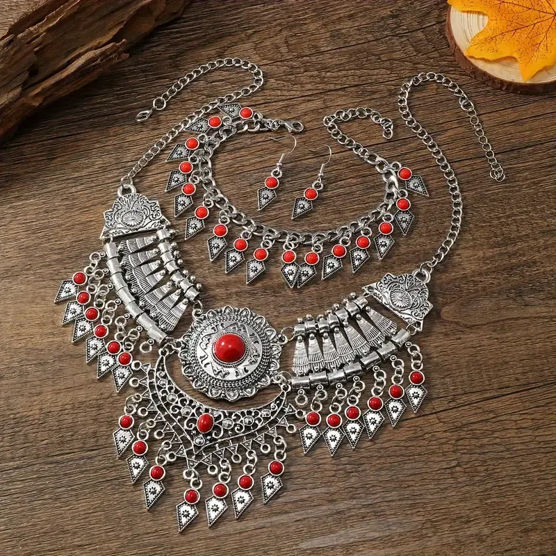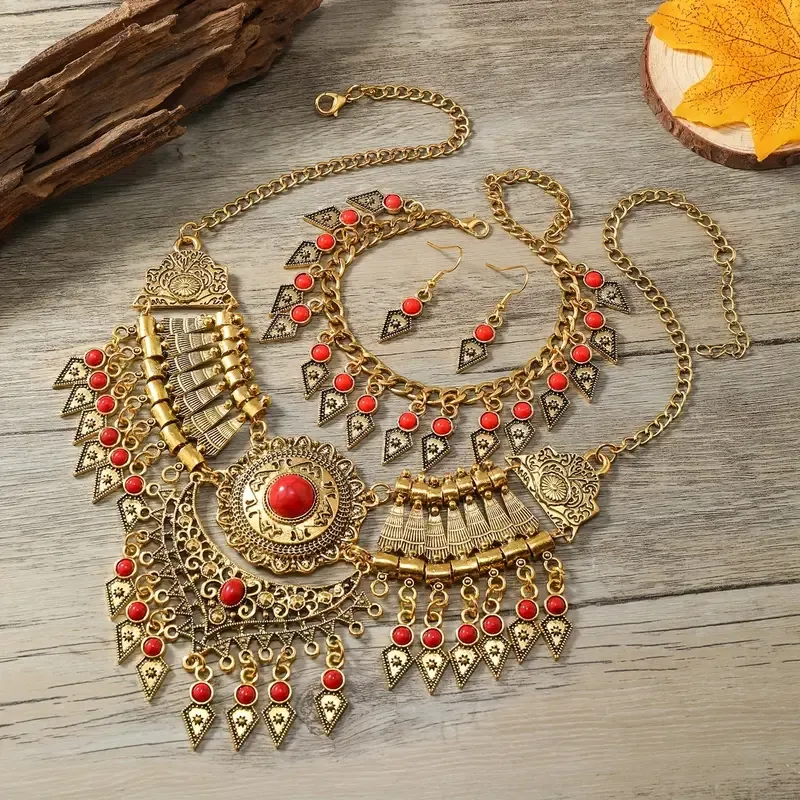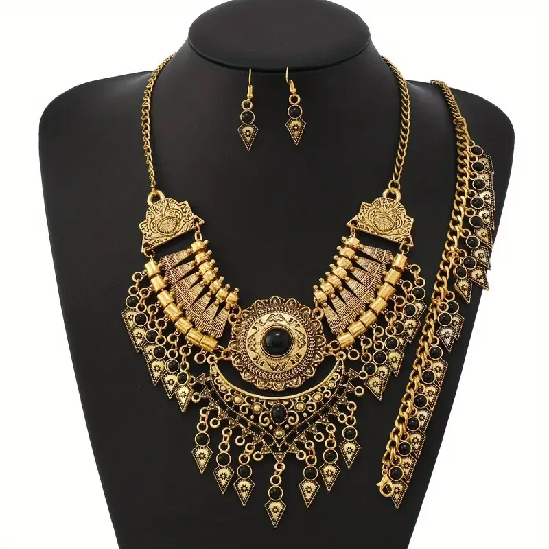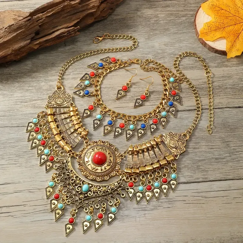 Greetings, brothers and sisters in Ghana! Our tribal jewelry sets are amazing! The vintage designs are incredibly chic and come in a variety of colors, perfect for everyday wear or a party. Included in this set are earrings, a bracelet, and a necklace, instantly elevating any look. With exceptional quality and affordable pricing, grab a set now for a steal!